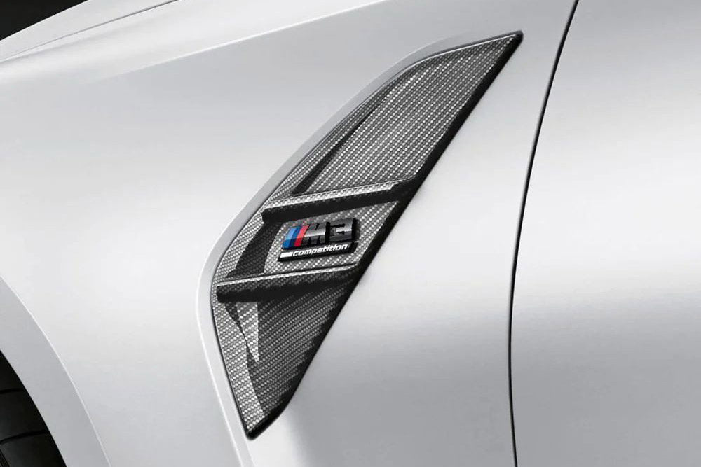 Genuine BMW G80 & G81 M3 Competition carbon fibre side grilles with M3 Competition side badges.